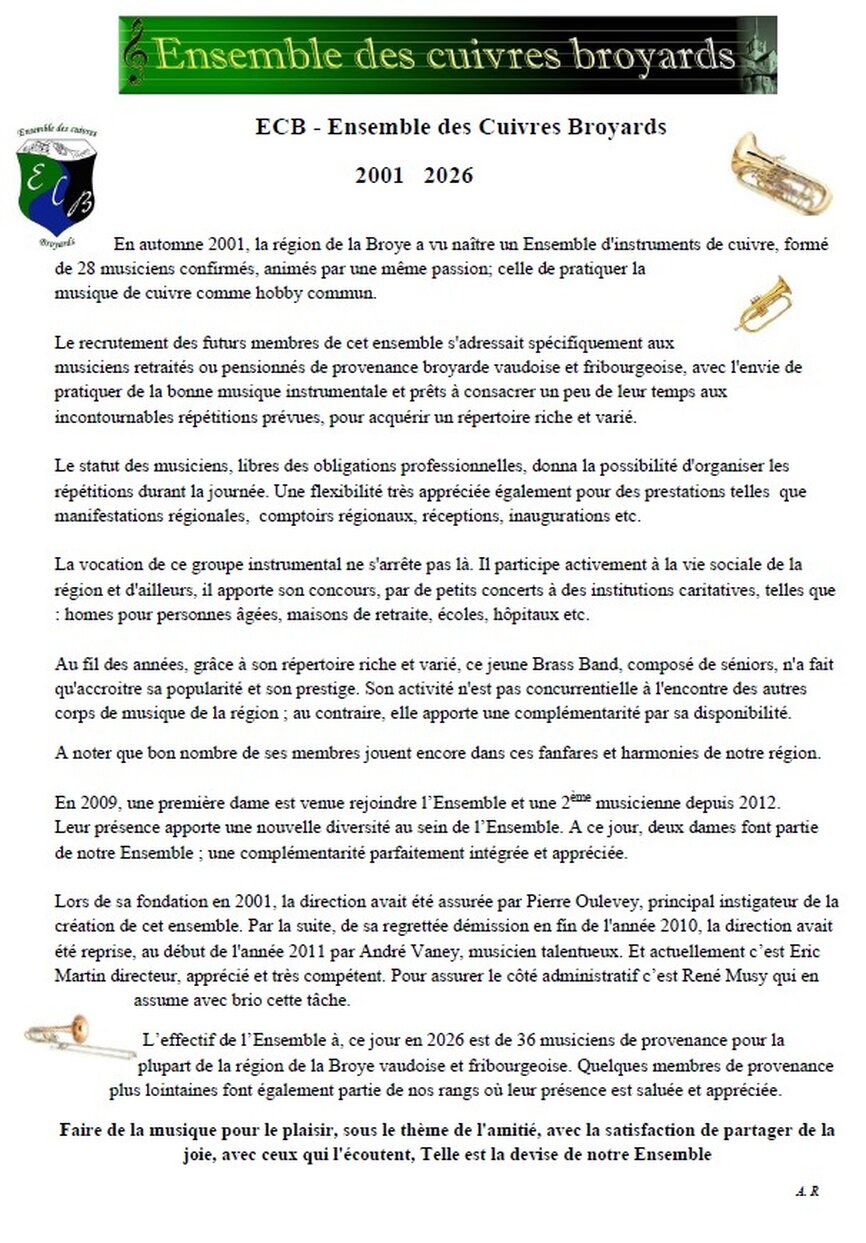 - Historique de l'Ensemble des Cuivres Broyards 2001-2026 -