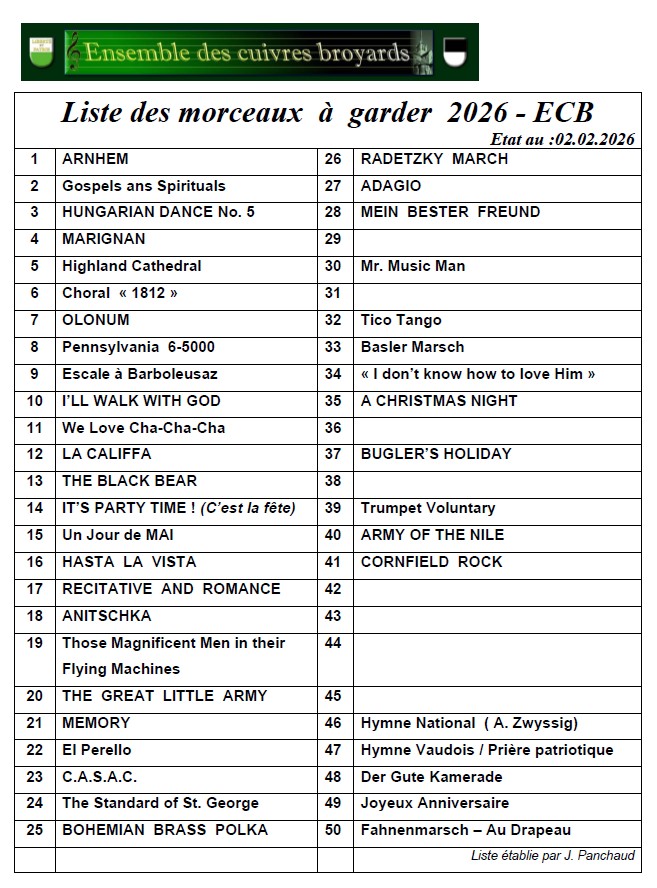 Liste morceau act. - Ensemble des Cuivres Broyards